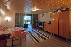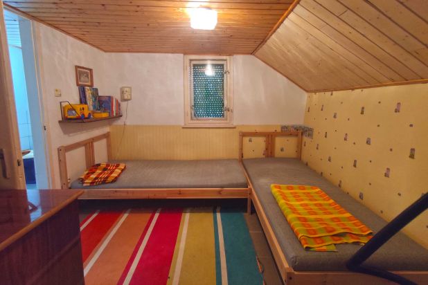 A tetőtéri kisebb szoba 8,68 m2 alapterületű, melyből nyílik a fürdőszoba.